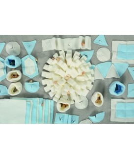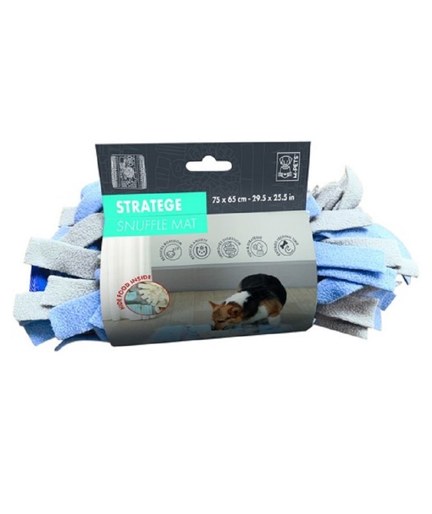La alfombra olfativa rectangular permite distribuir el alimento de forma estratégica, fomentando un trabajo de búsqueda más extenso y organizado.