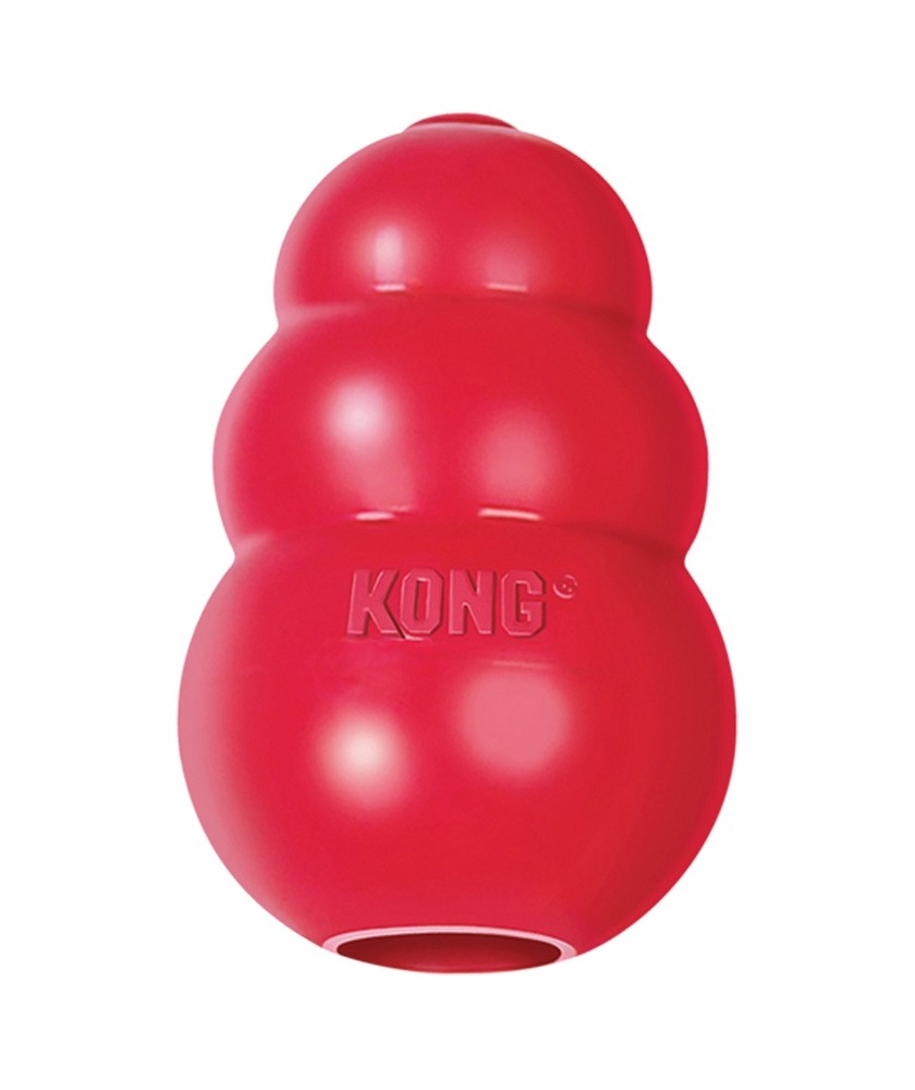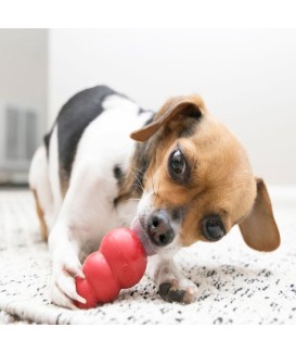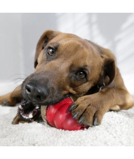 Juguete de caucho no tóxico duradero con cavidad interior para alimento que favorece la actividad mental, la ocupación autónoma y la canalización de energía en perros jóvenes y adultos activos.