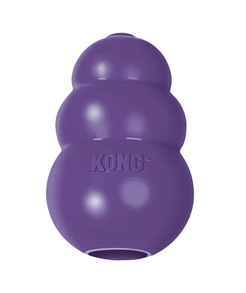 Juguete de caucho no tóxico con cavidad interior para alimento.