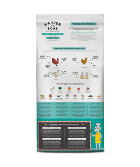 Composición: Elaborado con pollo deshidratado 12,5%, arroz extrusionado, pavo deshuesado preparado en fresco 8,3%, avena integral, guisantes verdes enteros, pavo deshidratado 6,9%, aceite de pollo (protegida con tocoferoles naturales) 6,8%, arroz integral, guisantes amarillos enteros, pollo deshuesado preparado en fresco 4,2%, cebada integral, pato deshidratado 3,3%, hígado de pollo preparado en fresco 3,3%, hígado de pavo preparado en fresco 3,3%, pulpa de remolacha, hígado de pollo hidrolizado 1,6%, hígado de pavo hidrolizado 0,8%, pato deshuesado preparado en fresco 0,7%, semillas de lino (fuente natural de ácidos grasos ω3), fibra de manzana, aceite de pescado (protegido con tocoferoles naturales) 0,5%, minerales, levaduras (Saccharomyces cerevisiae), brócoli fresco 1000 mg/kg, calabaza fresca 1000 mg/kg, manzanas frescas 1000 mg/kg, zanahorias frescas 1000 mg/kg, glucosamina 1000 mg/kg, condroitina 600 mg/kg, pared celular hidrolizada de levaduras (fuente de MOS) 500 mg/kg, achicoria (fuente de FOS) 500 mg/kg, extracto de mandarina 500 mg/kg, Yucca schidigera 200 mg/kg, alga kelp 30 mg/kg, arándanos rojos enteros 30 mg/kg, rosa canina (rica en vitamina C) 30 mg/kg, té verde 30 mg/kg, cúrcuma 30 mg/kg.