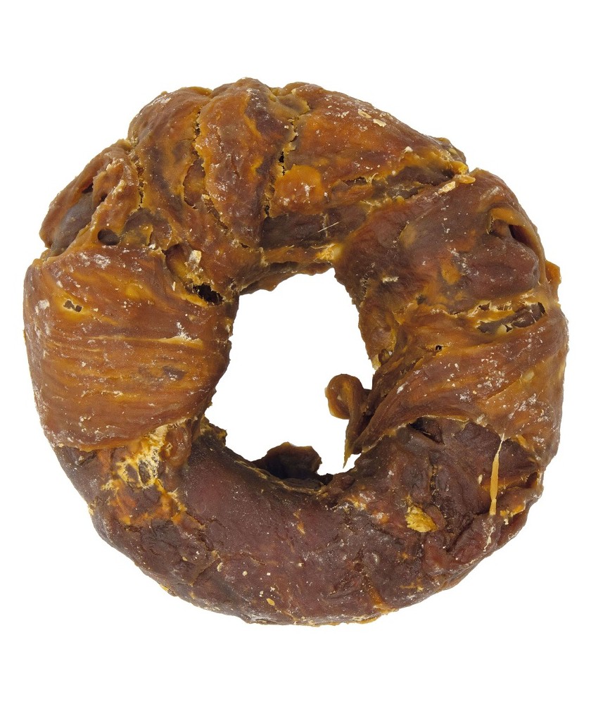 Deliciosa rosquilla de piel y pato Extra Carne, un snack funcional y nutritivo elaborado con ingredientes naturales de alta calidad.