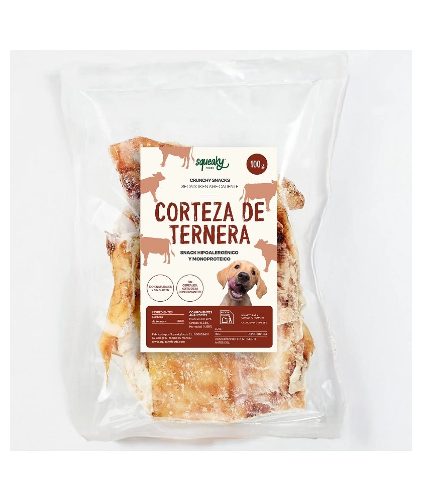 Composición: 100% Piel de Ternera Natural Deshidratada a baja temperatura para conservar todos sus nutrientes.