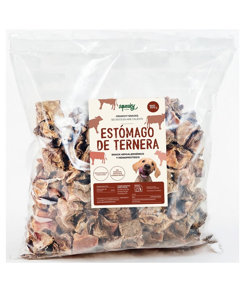 Composición: 100% Estómago de Ternera Natural Deshidratado conservando todos sus nutrientes.