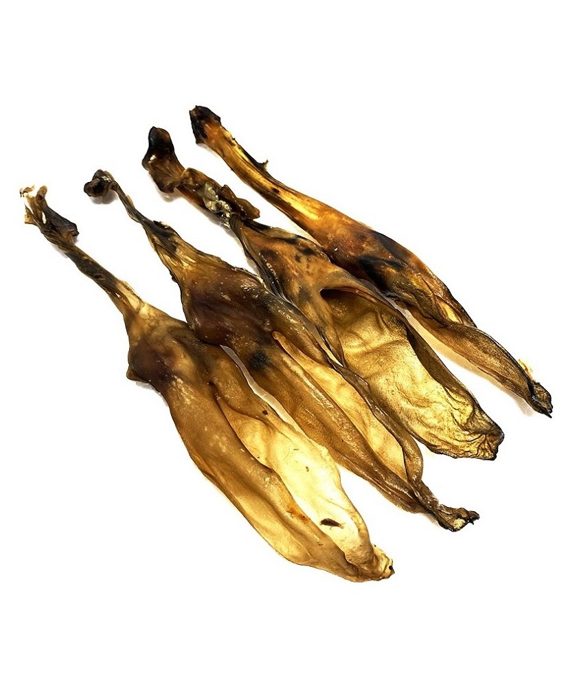Composición: 100% Oreja de Conejo Natural sin Pelo Deshidratada a baja temperatura para conservar todos sus nutrientes.